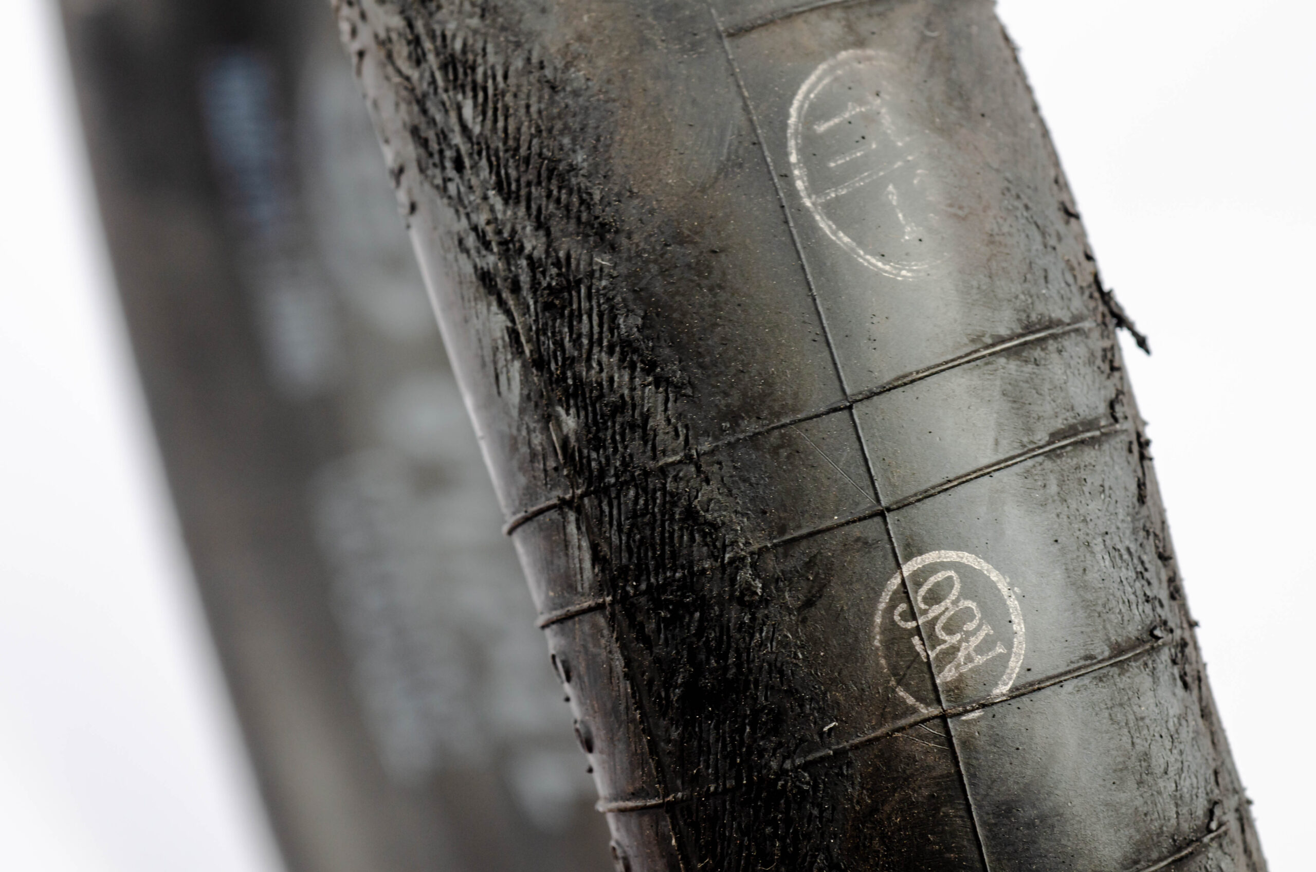 Destrozada camara de aire original de un patinete eléctrico Xiaomi M365